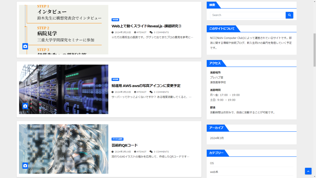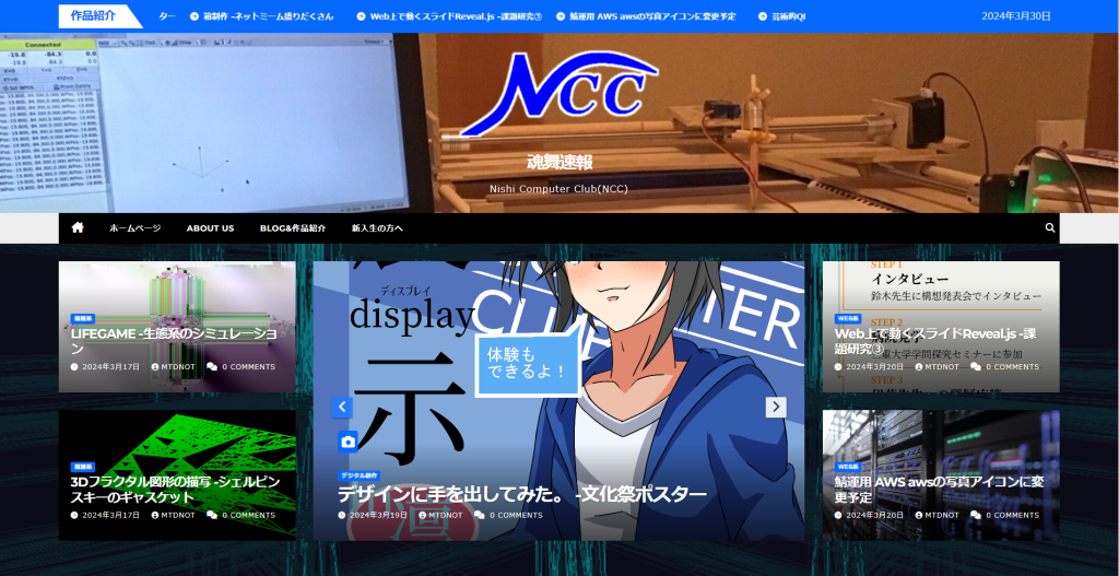 自由に動くことができるので、様々な挑戦をすることができます。例えば、今回のこのサイトはコンピュータ部だけが実際にサーバー運用をし、サイトを立ち上げました。また、デジタルサイネージという広告、マーケティング分野も学校を舞台として実践しました。