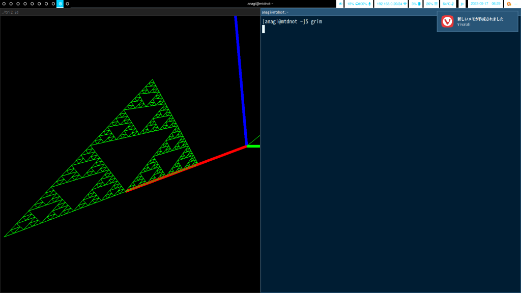 今回はその環境にC,C++言語用の環境を用意したので、OPENGLというライブラリによって動いています。