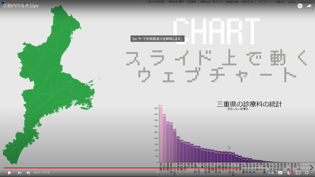 課題研究第二弾ということで、今回はGISデータ(地理データ)をフル活用した動的でインタラクティブ(要は触って動く)チャートを作ったという話を紹介します。